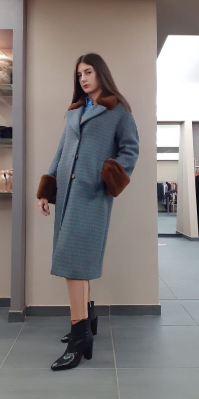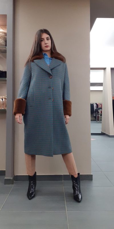 Cappotto in lana piede de poule azzurro/marrone Carla Vì