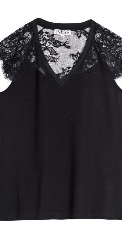 T-shirt nera con pizzo Fuego Woman