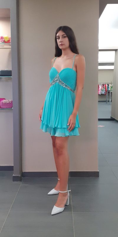 Abito corto chiffon col. verde tiffany Vittoria Romano