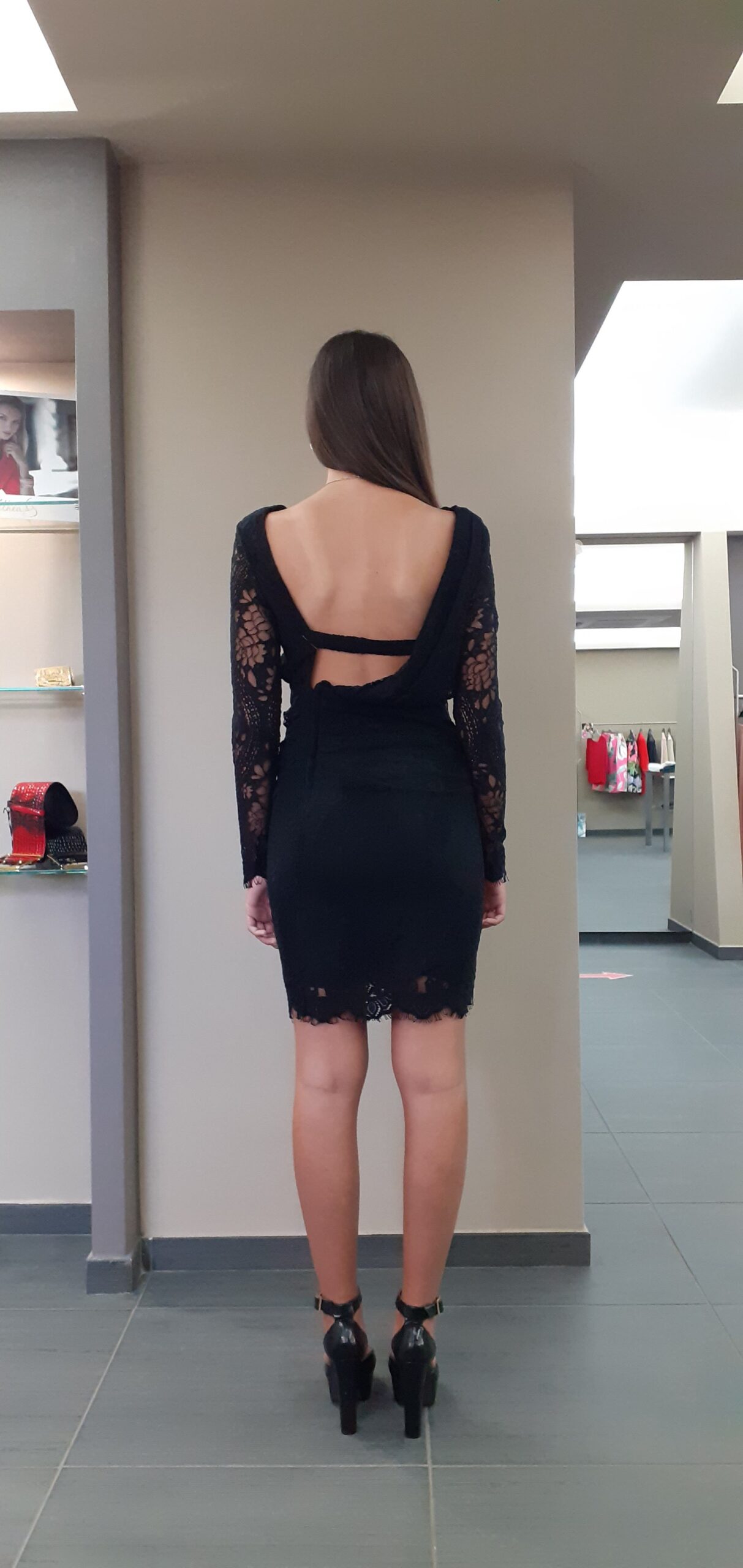 Abito corto elegante manica lunga pizzo nero Twins Beach Couture