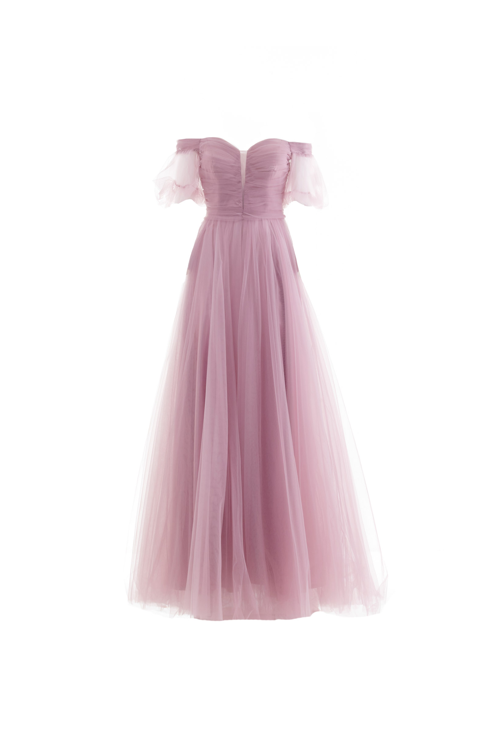 Abito lungo cady/chiffon verde-acquamarina Kuea