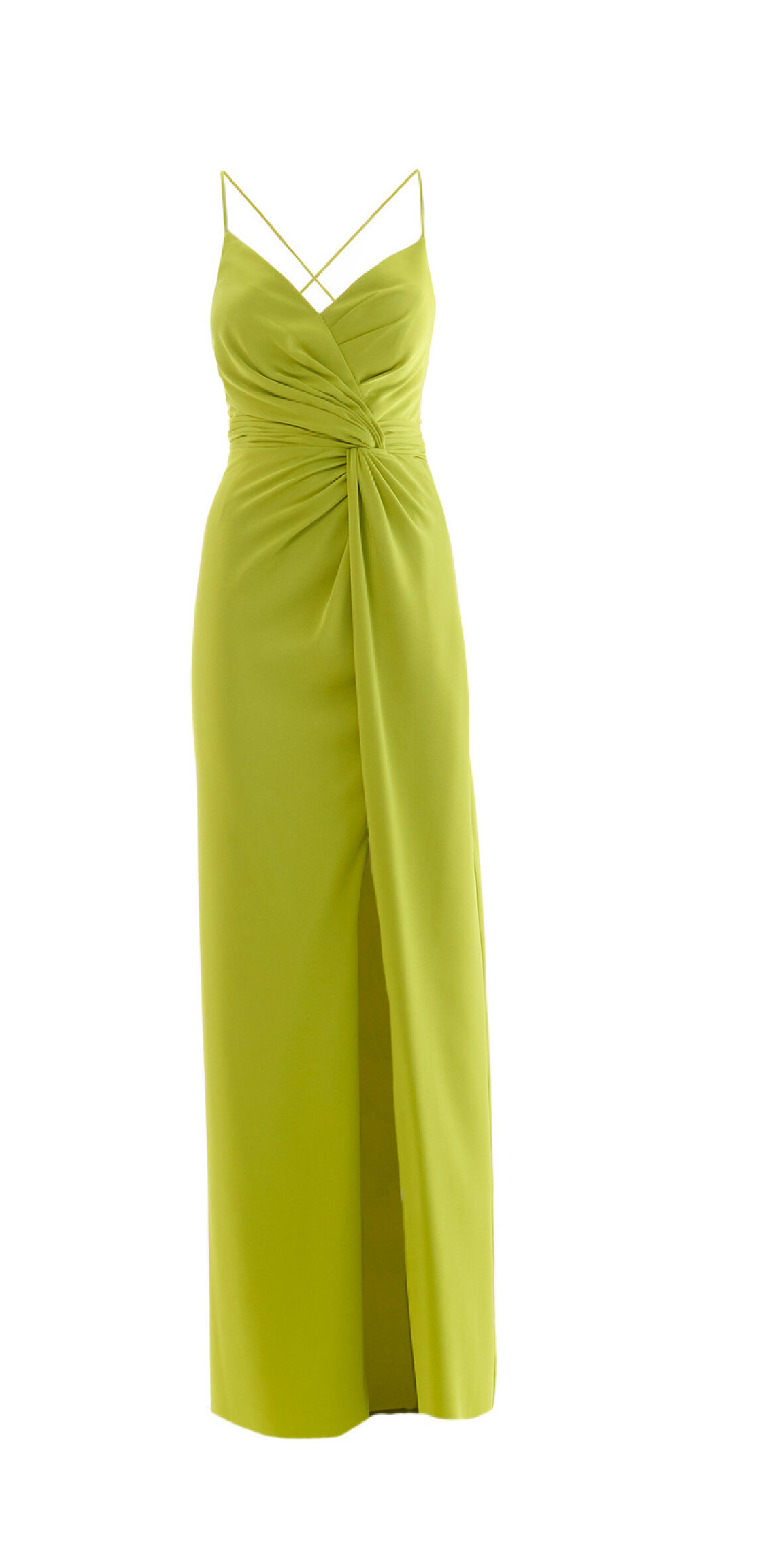 Abito lungo in cady, drappeggio sul corpetto, scollatura sulla schiena, colore Verde Lime