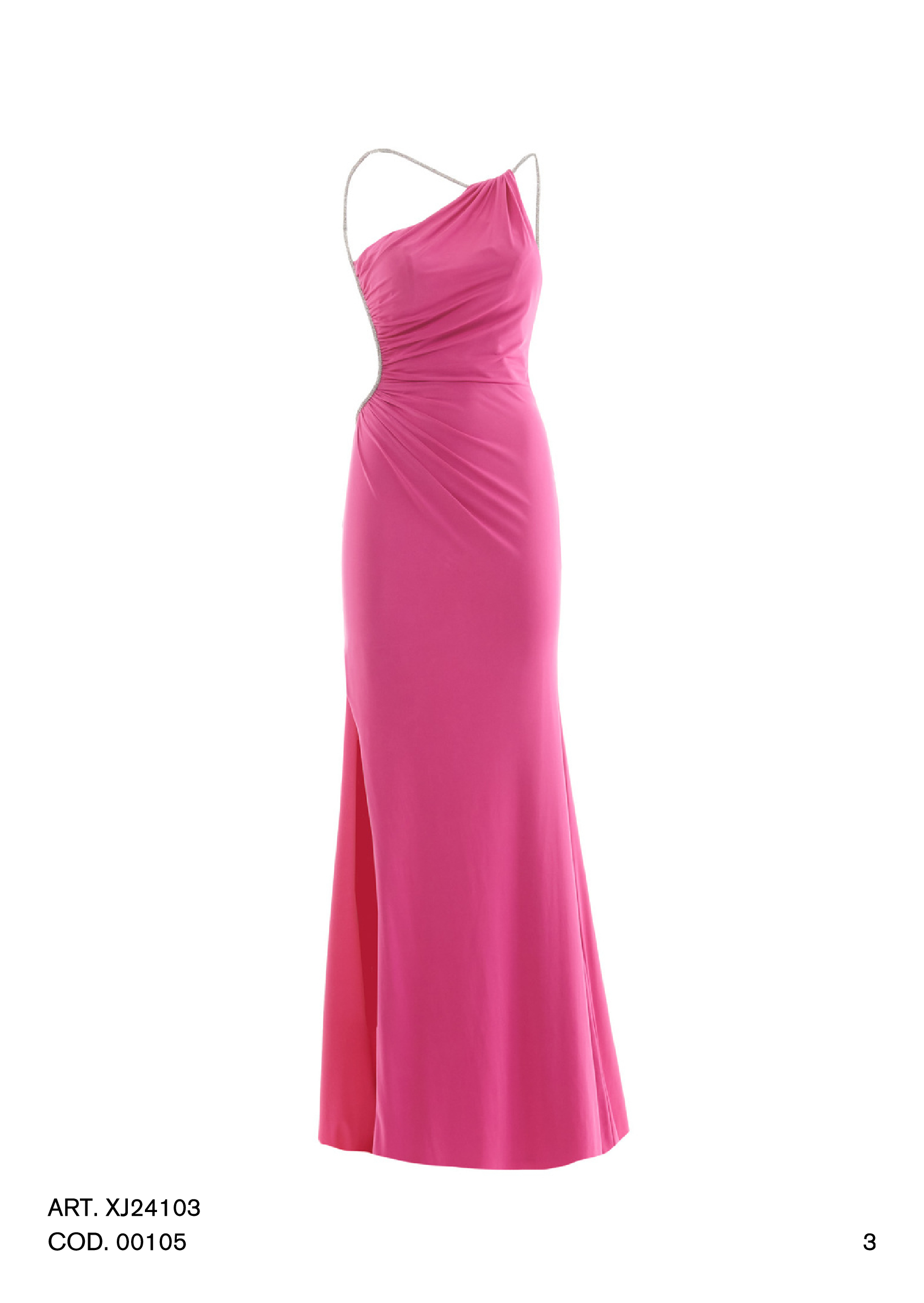Abito a sirena in jersey cut out mono spalla con dettagli in metallo e strass