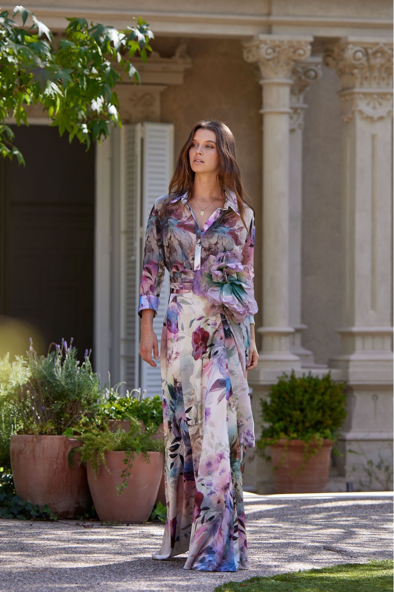 Lasciati avvolgere dalla leggerezza e dal movimento di questa gonna lunga con stampa floreale in toni ad acquerello , un capo che irradia romanticismo moderno Progettata per stilizzare la silhouette con una caduta fluida e femminile, questa gonna è ideale per occasioni speciali, ospiti diurni o abiti editoriali alla ricerca di un tocco artistico e senza tempo.
