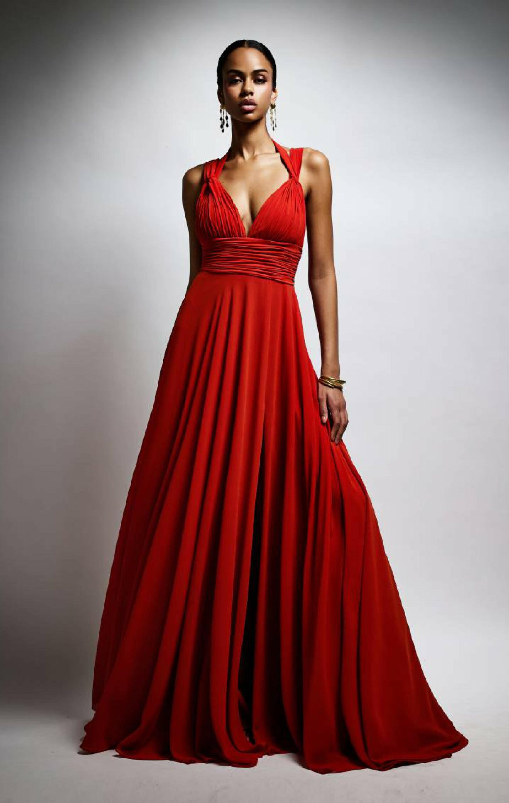 Abito lungo colore Bruciato, corpetto con scollatura sul seno,