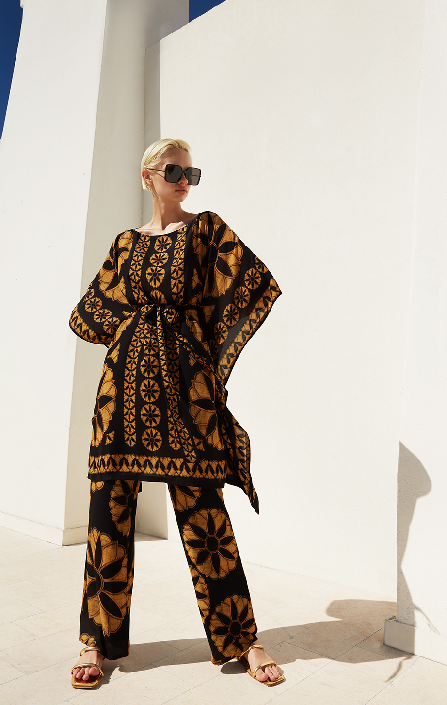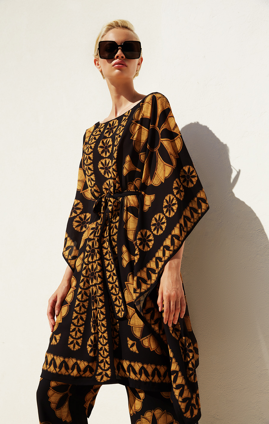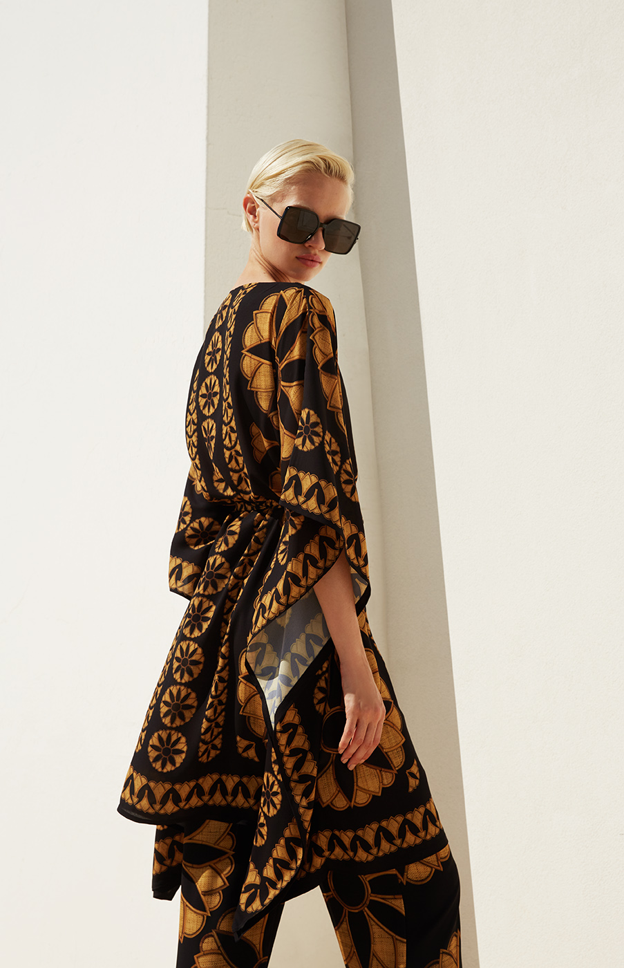 Abito lungo cady/chiffon verde-acquamarina Kuea