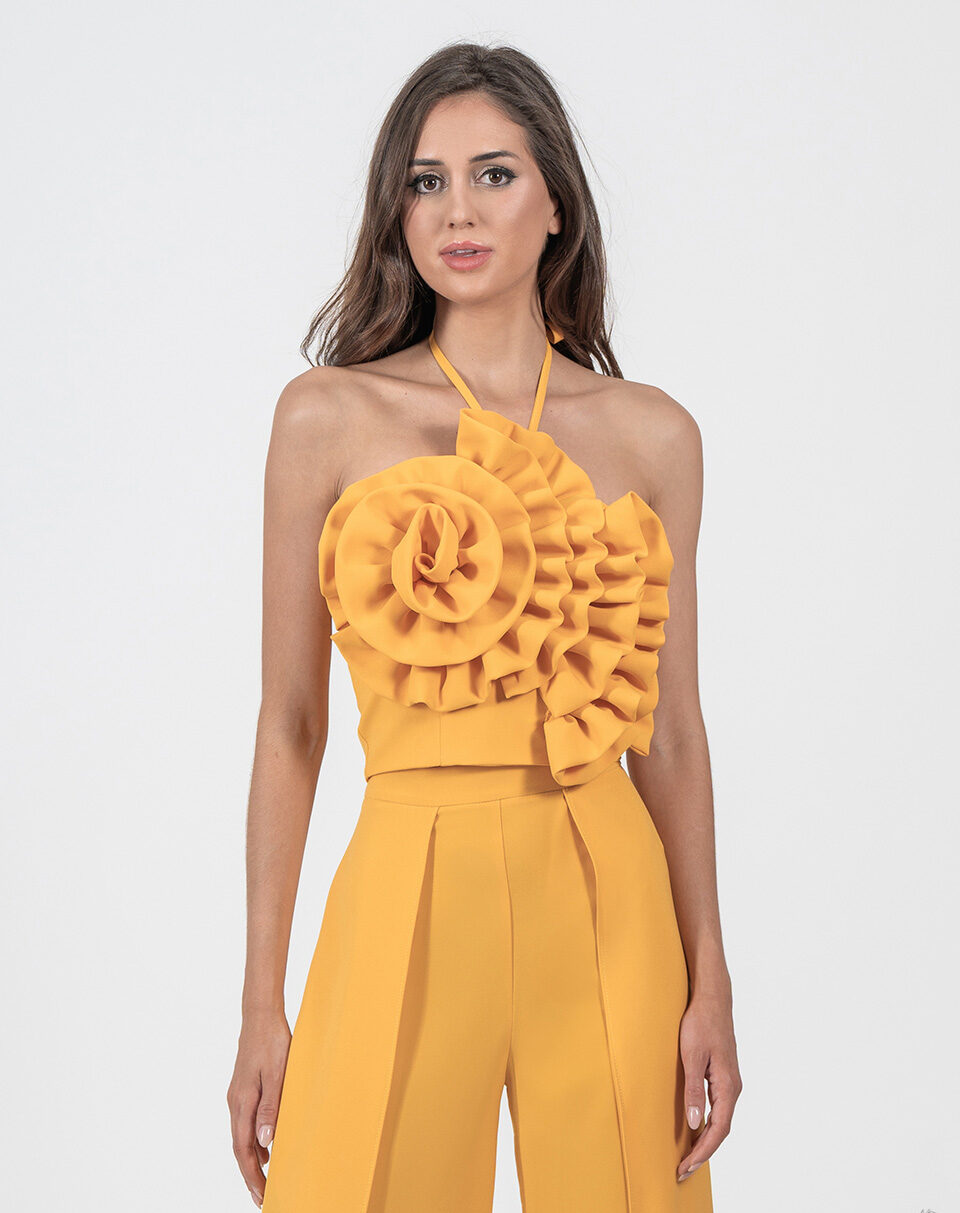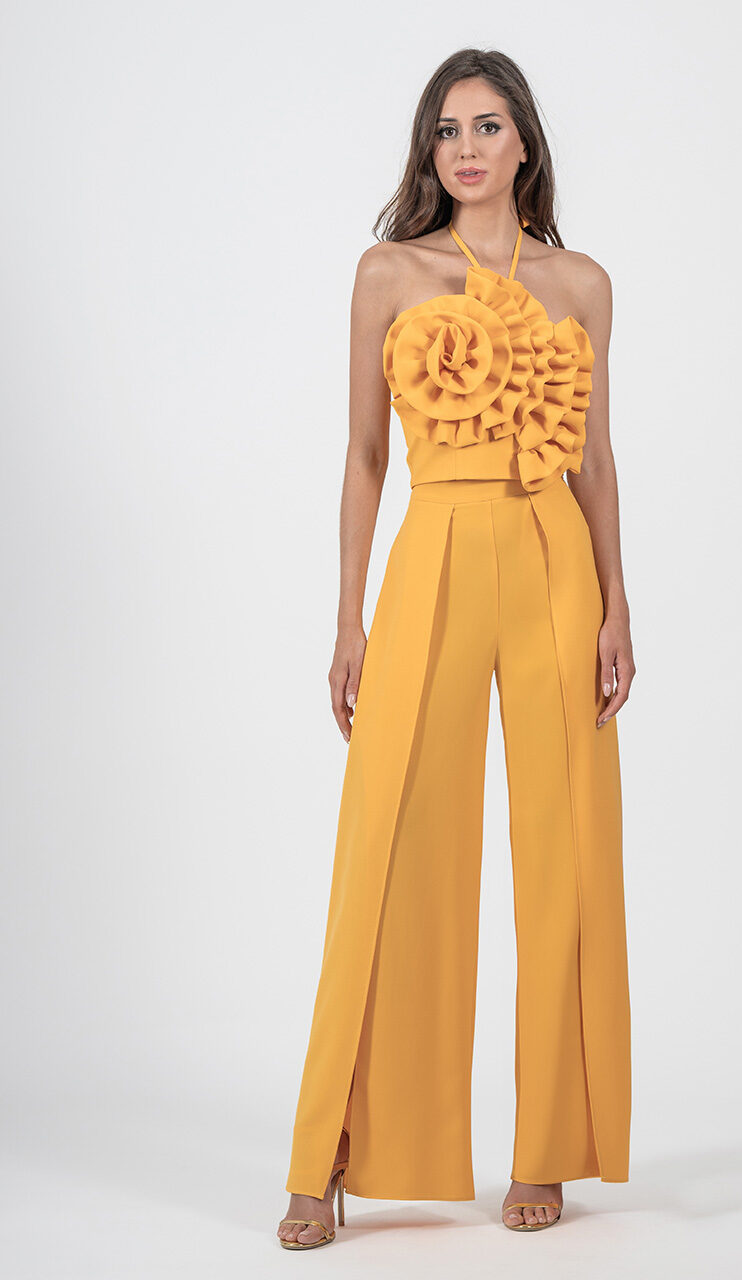 pantalone largo, con pannello sul davanti, tutto colore Girasole