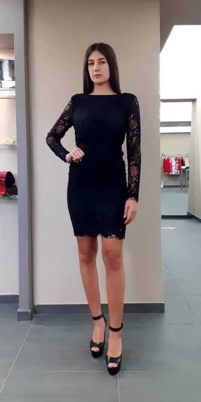 Abito corto elegante manica lunga pizzo nero Twins Beach Couture