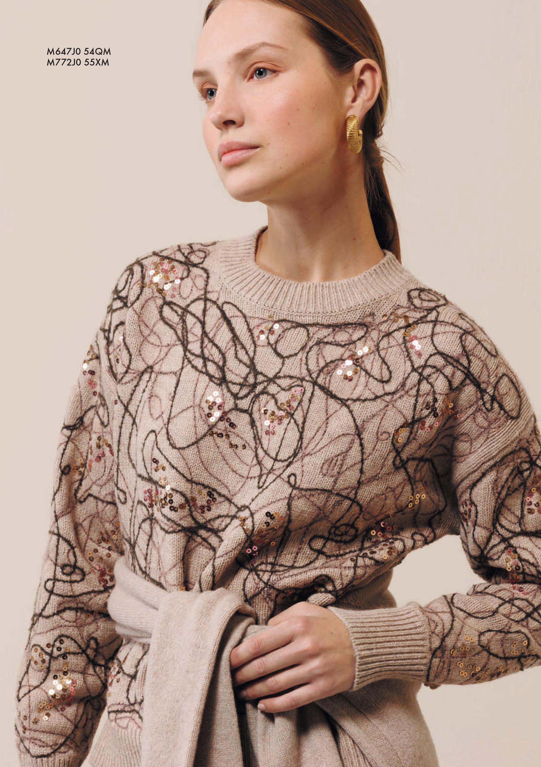 Maglia girocollo ricamata con paillettes
