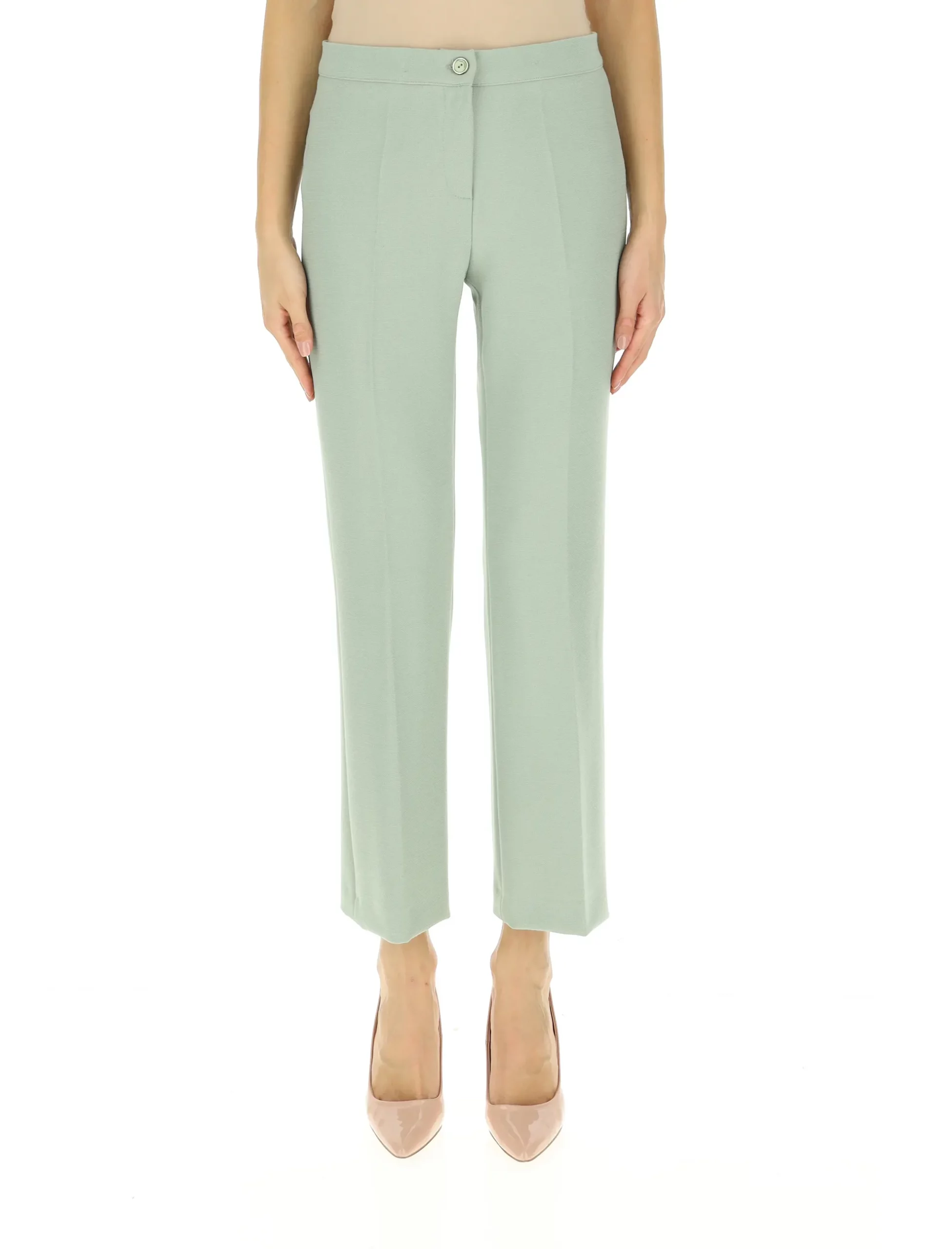 Pantalone gamba dritta, chiusura con bottone e zip, tessuto lavorato Colore Salvia
